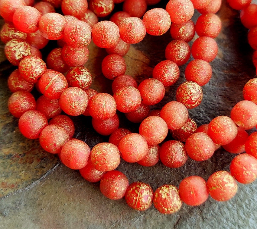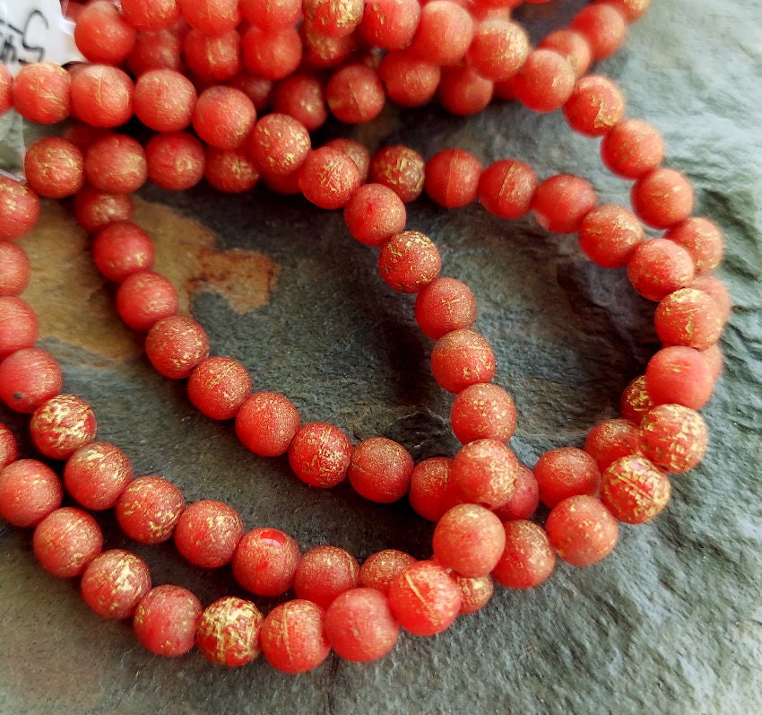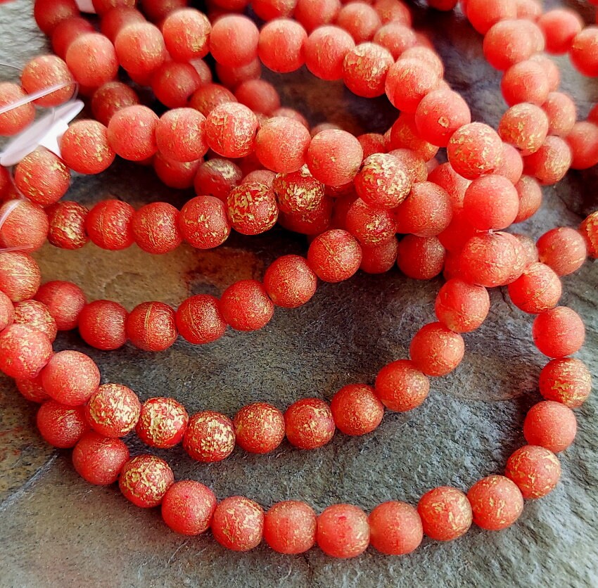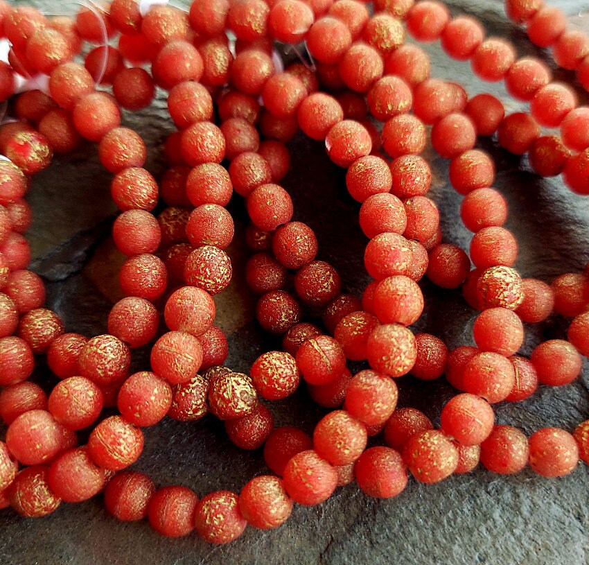 Hyacinth, Metallic, Gold Wash ETCHED, 6mm, Druks, 30 pieces per strand, Priced per Strand