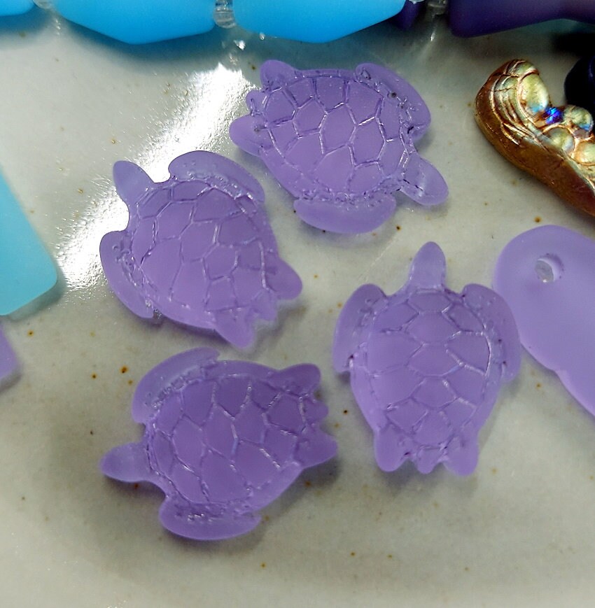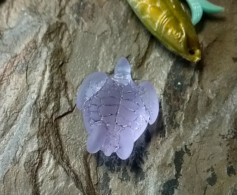 Sea Glass Sea Turtles 18x22mm - sizes vary slightly Priced per Piece 1mm Hole - side-to-side through head