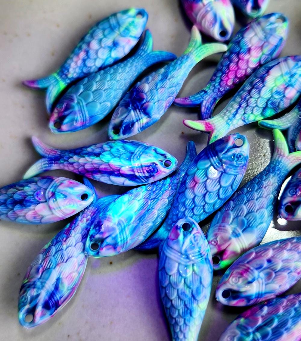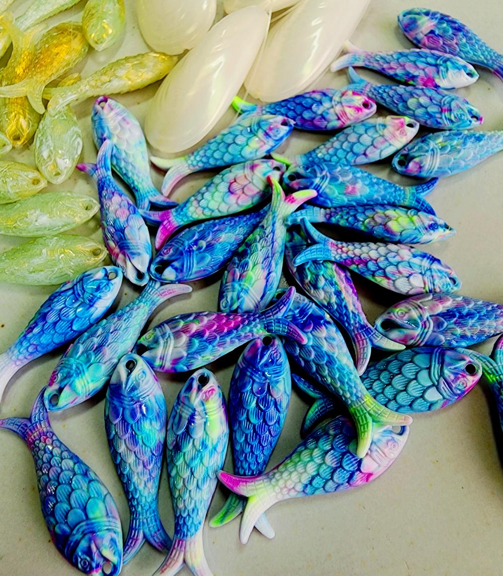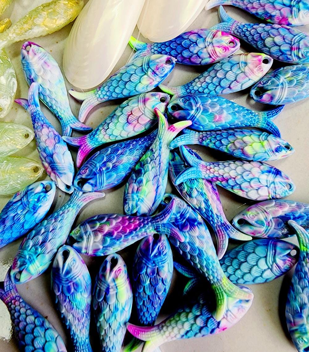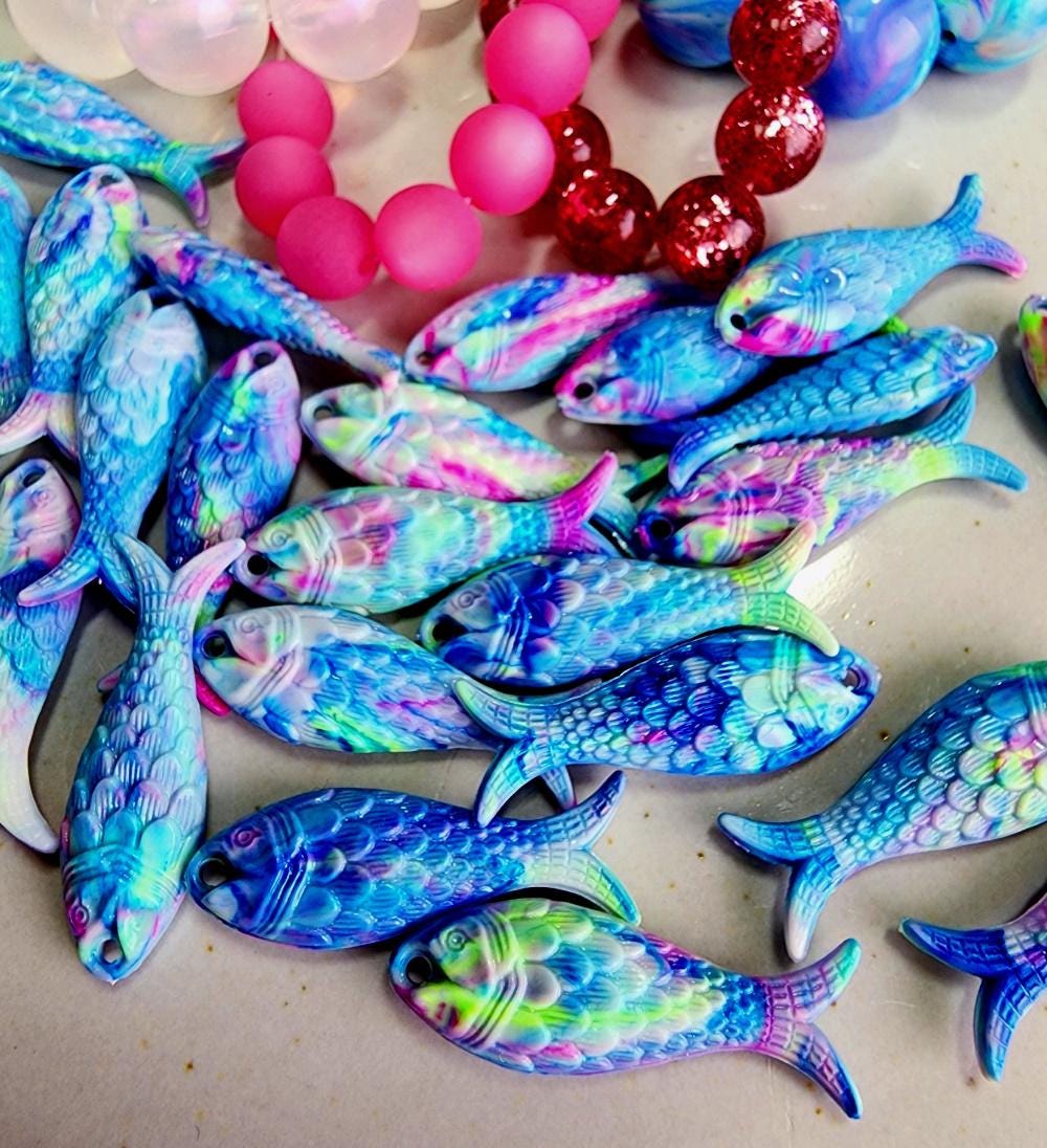 Lucite Fish Component 27x9x5mm Opaque Marbled Cotton Candy PRICED PER PIECE