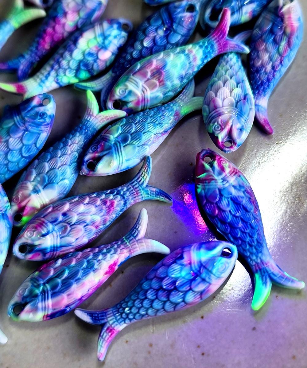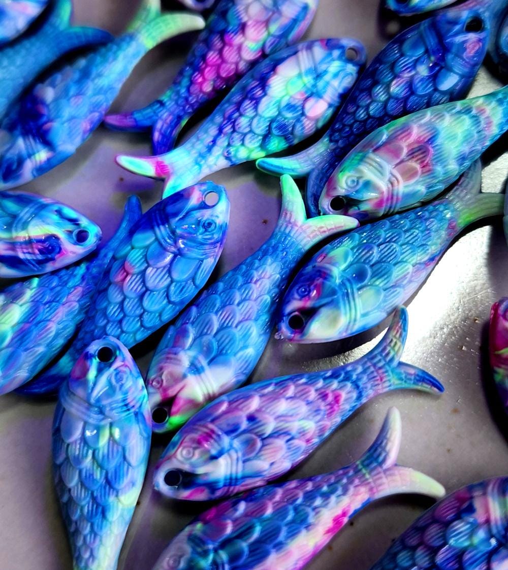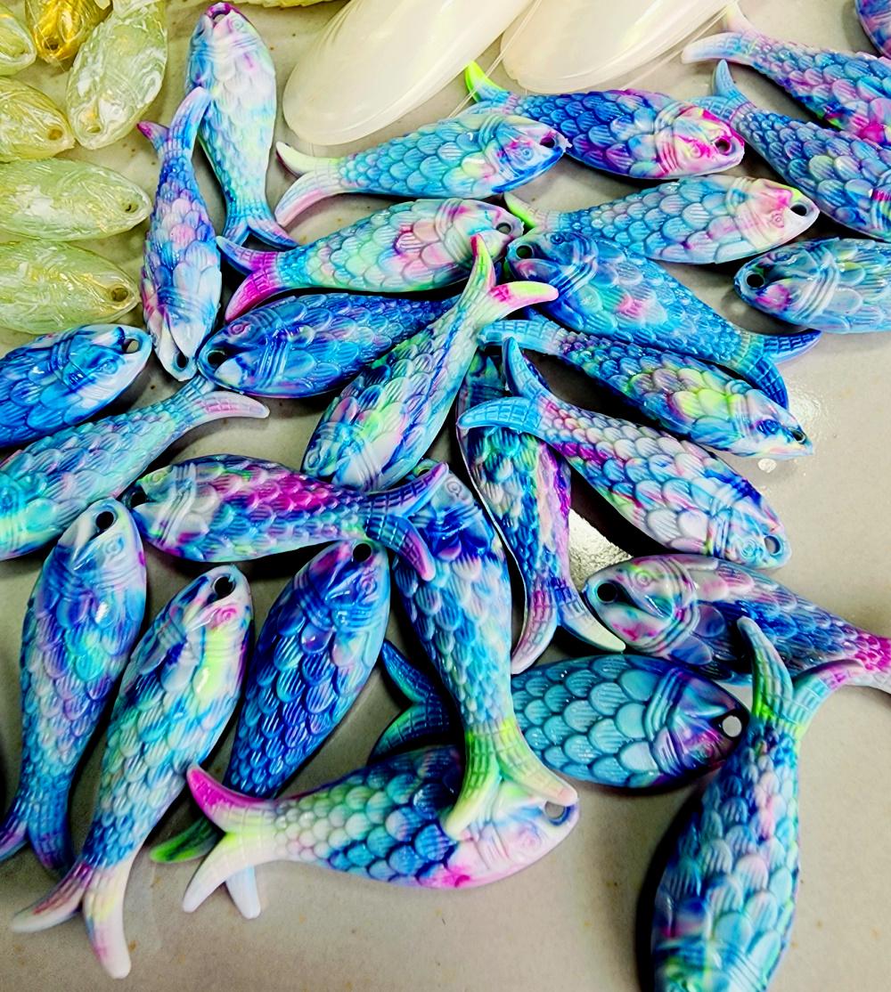 Lucite Fish Component 27x9x5mm Opaque Marbled Cotton Candy PRICED PER PIECE