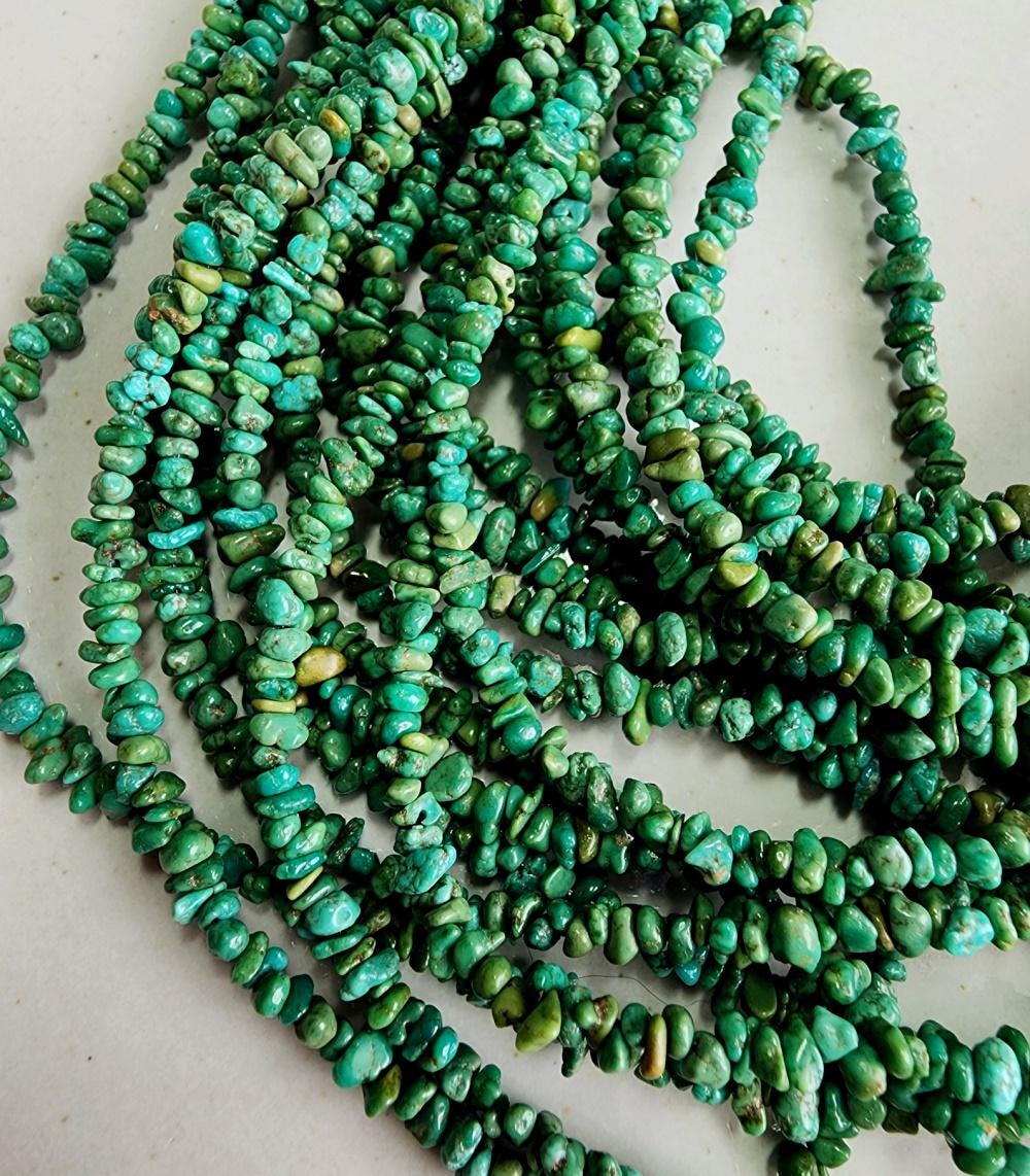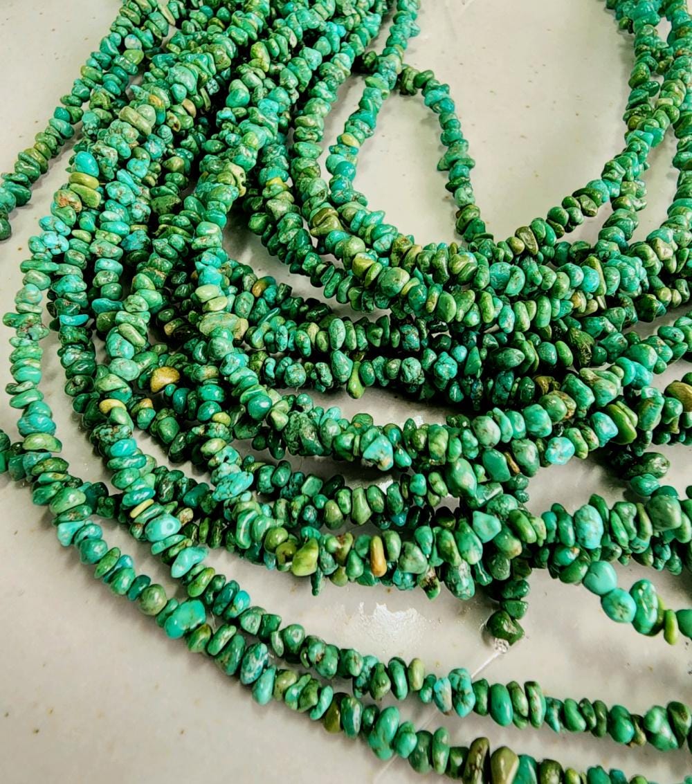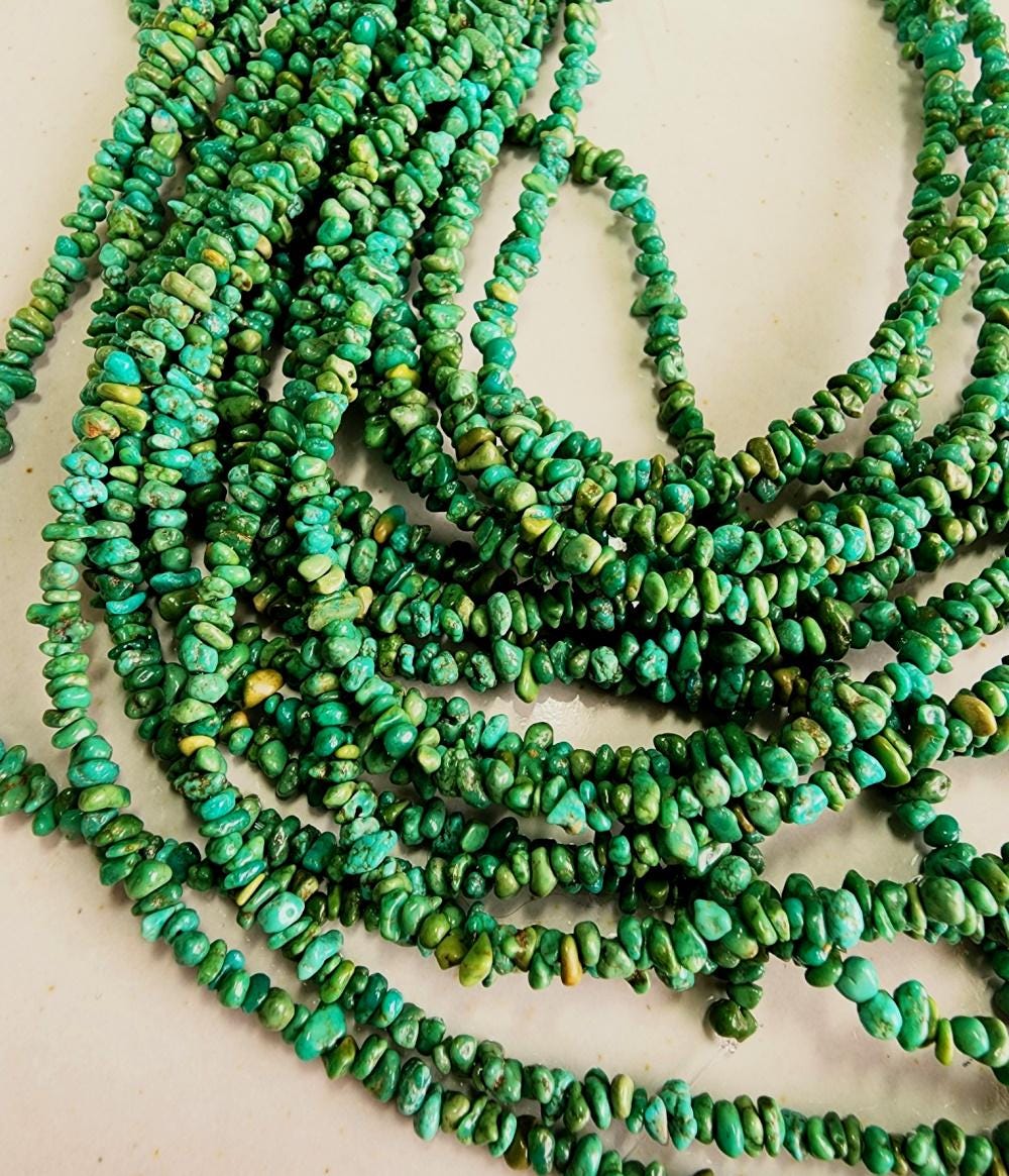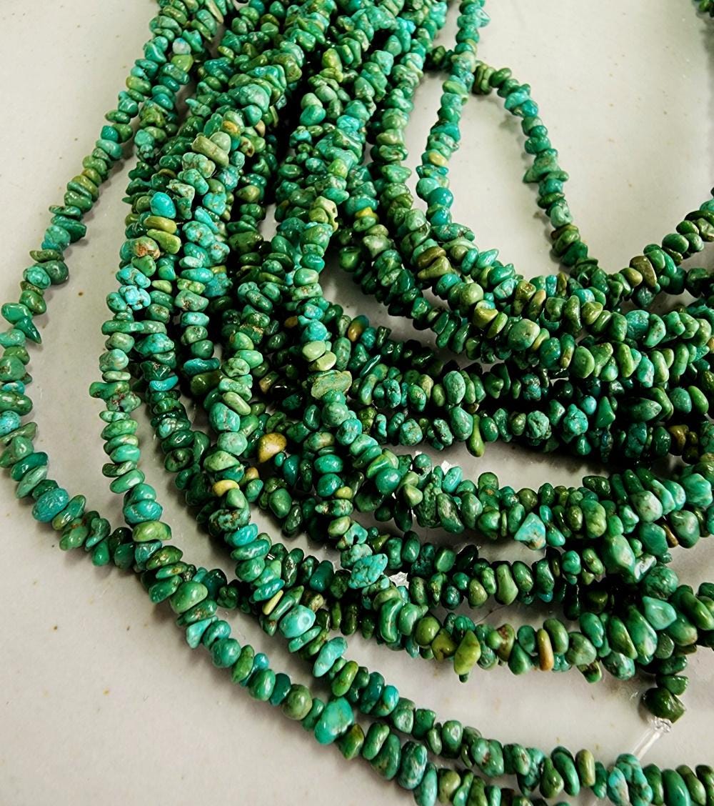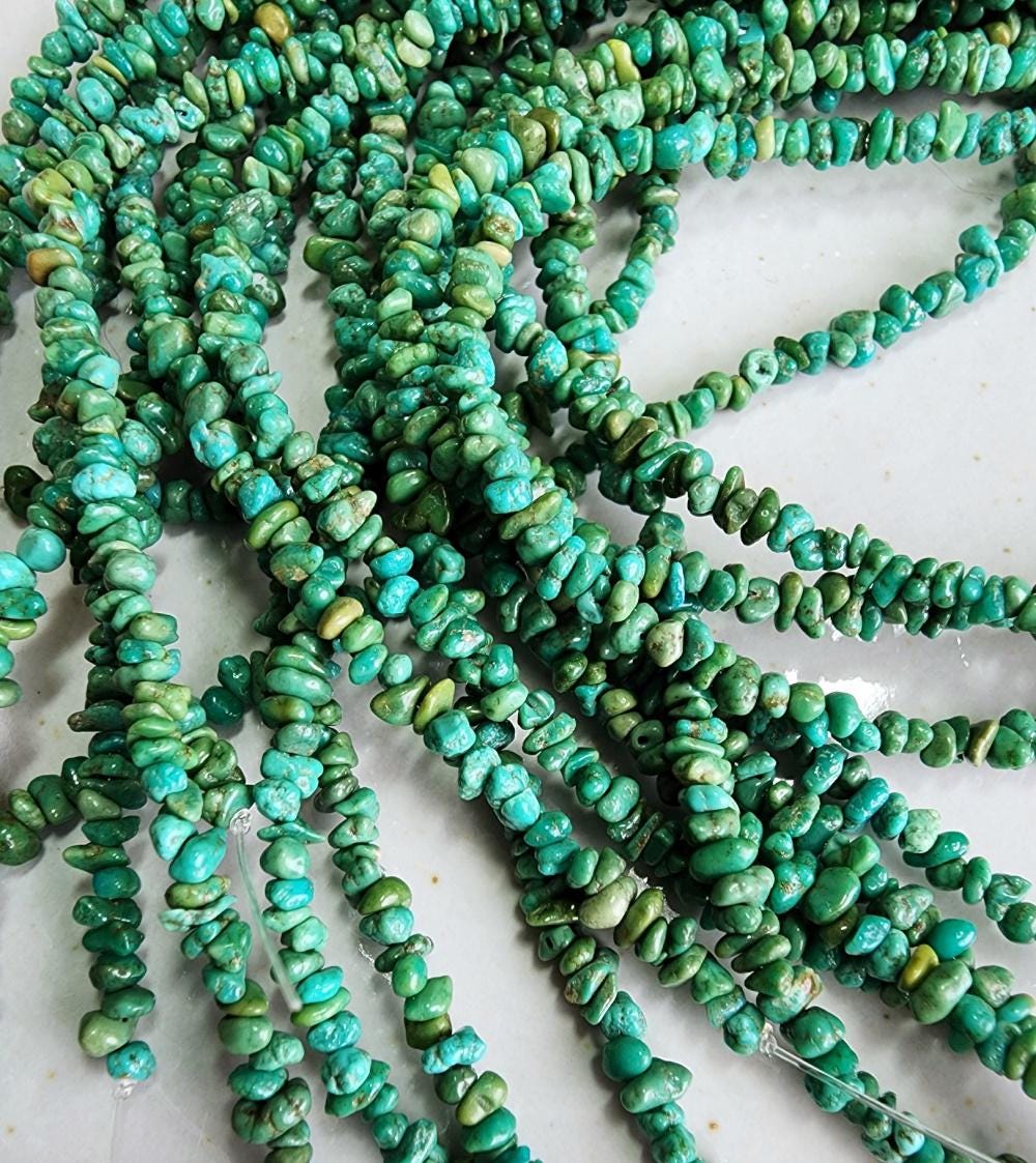 Turquoise, Tibetan, 3x2mm, Grade A, Green, Chips, 8 inch strands, Half strands, Priced per Strand