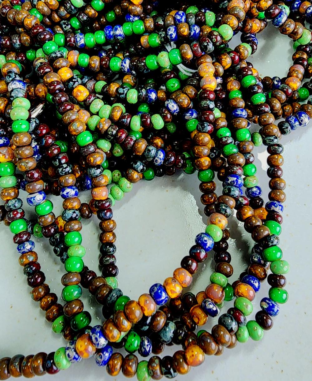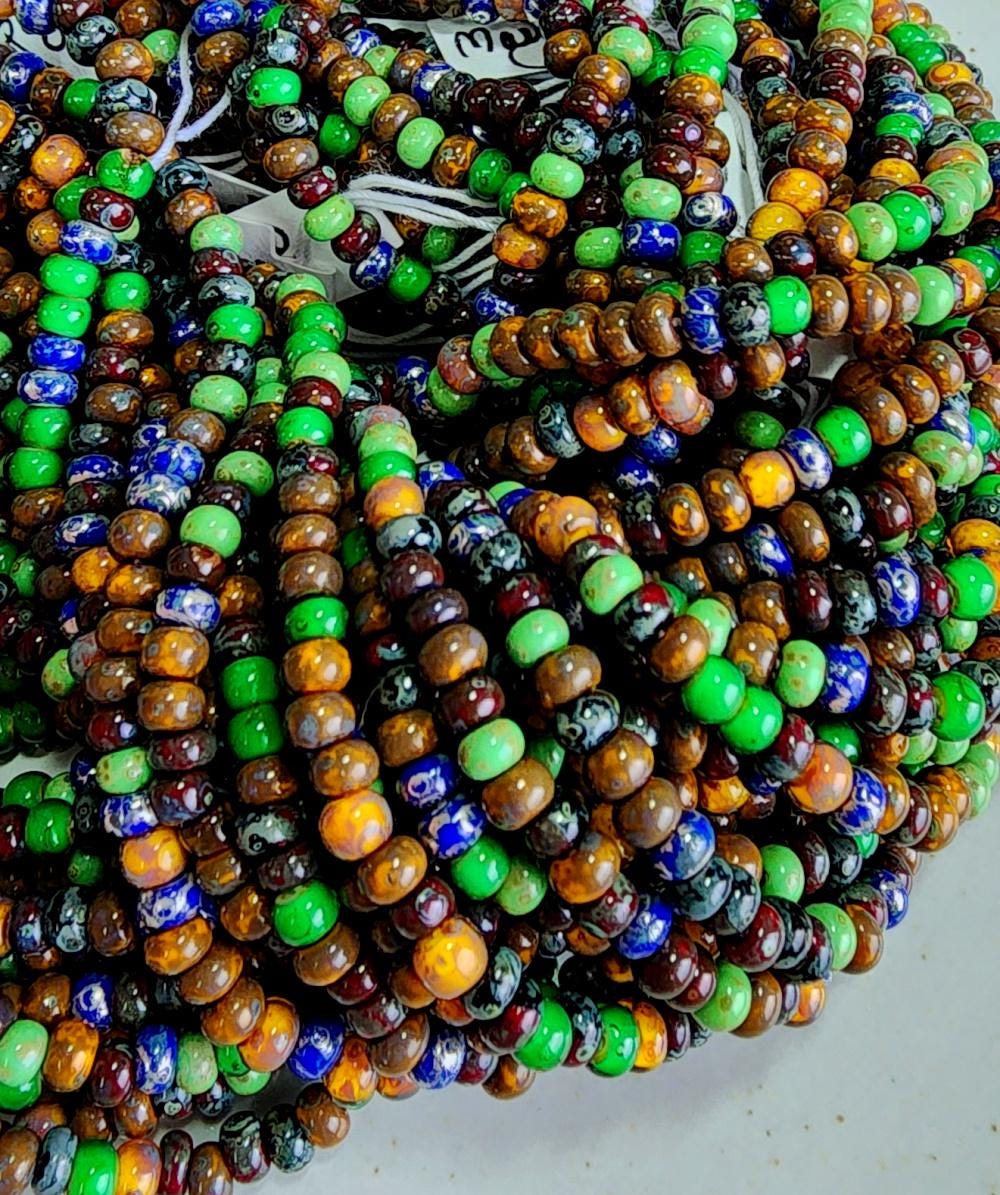 Mayan, Picasso, Czech, Mixed, \Seed Beads, 6/0, Rocaille, Czech Glass, 20 inch (9bds/inch) Priced per strand