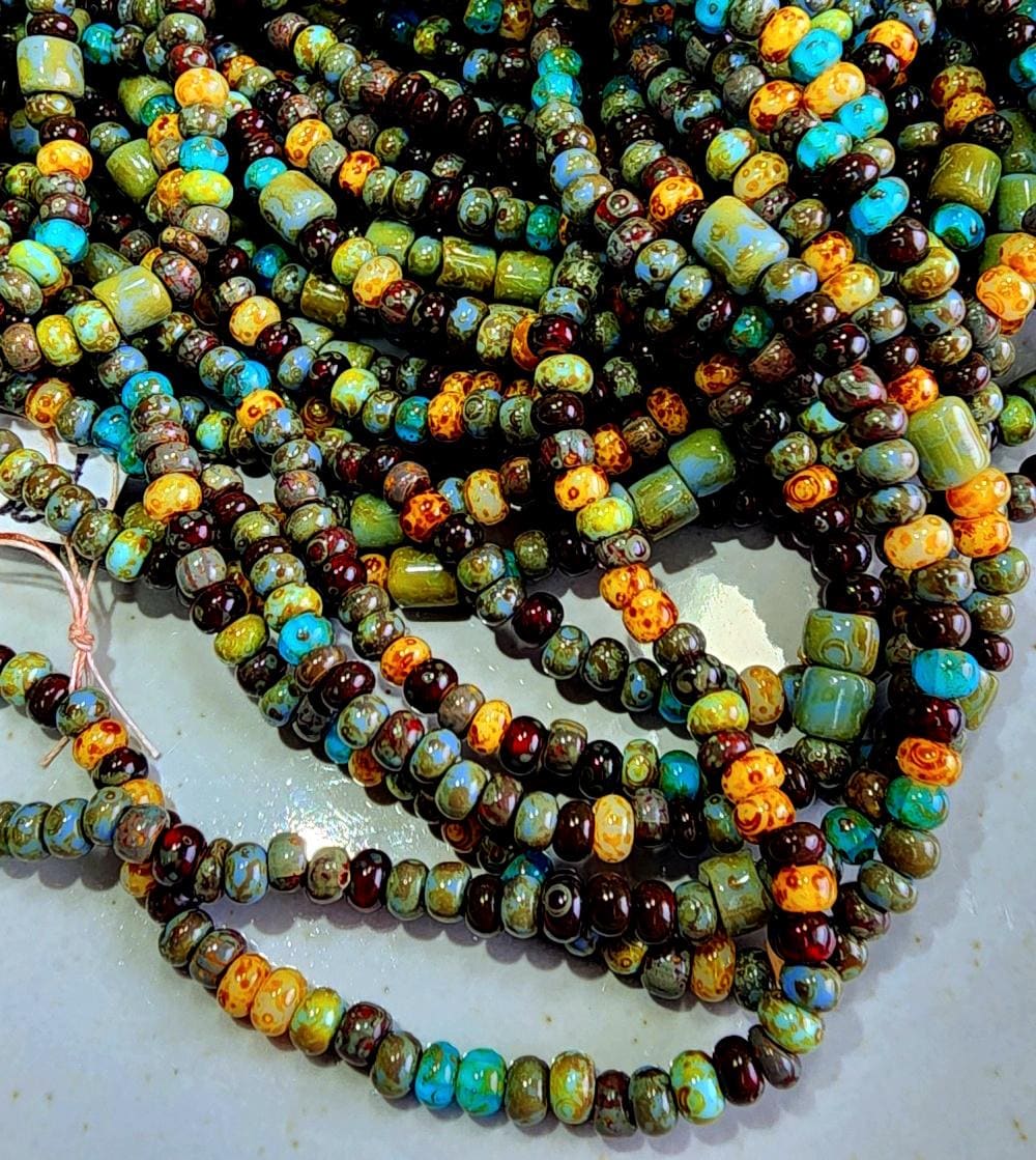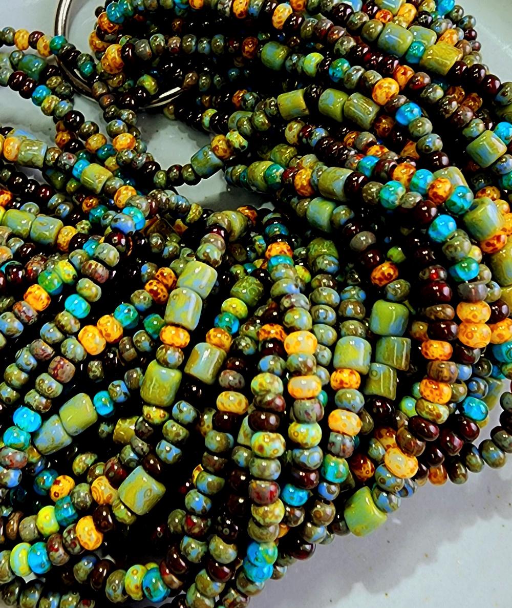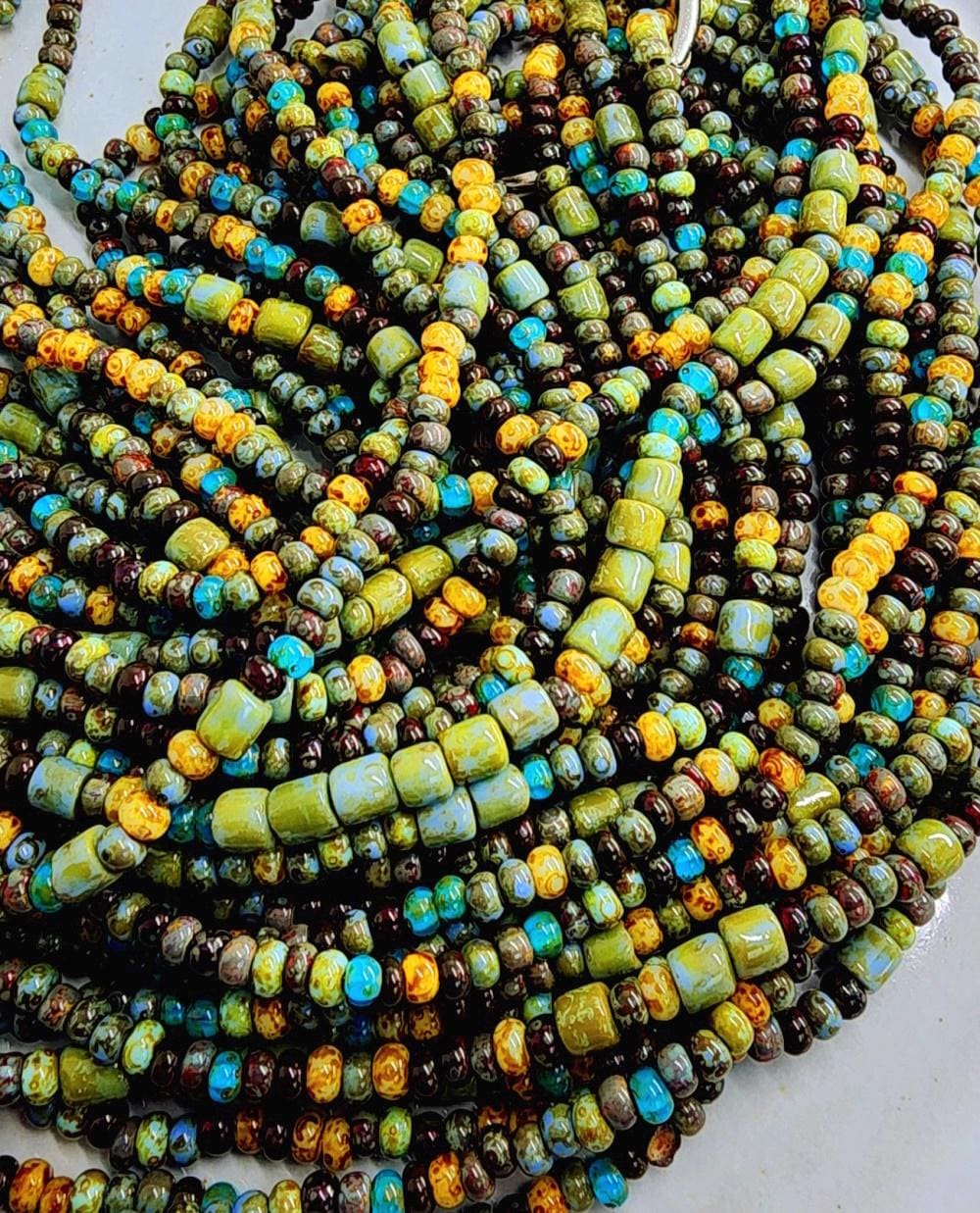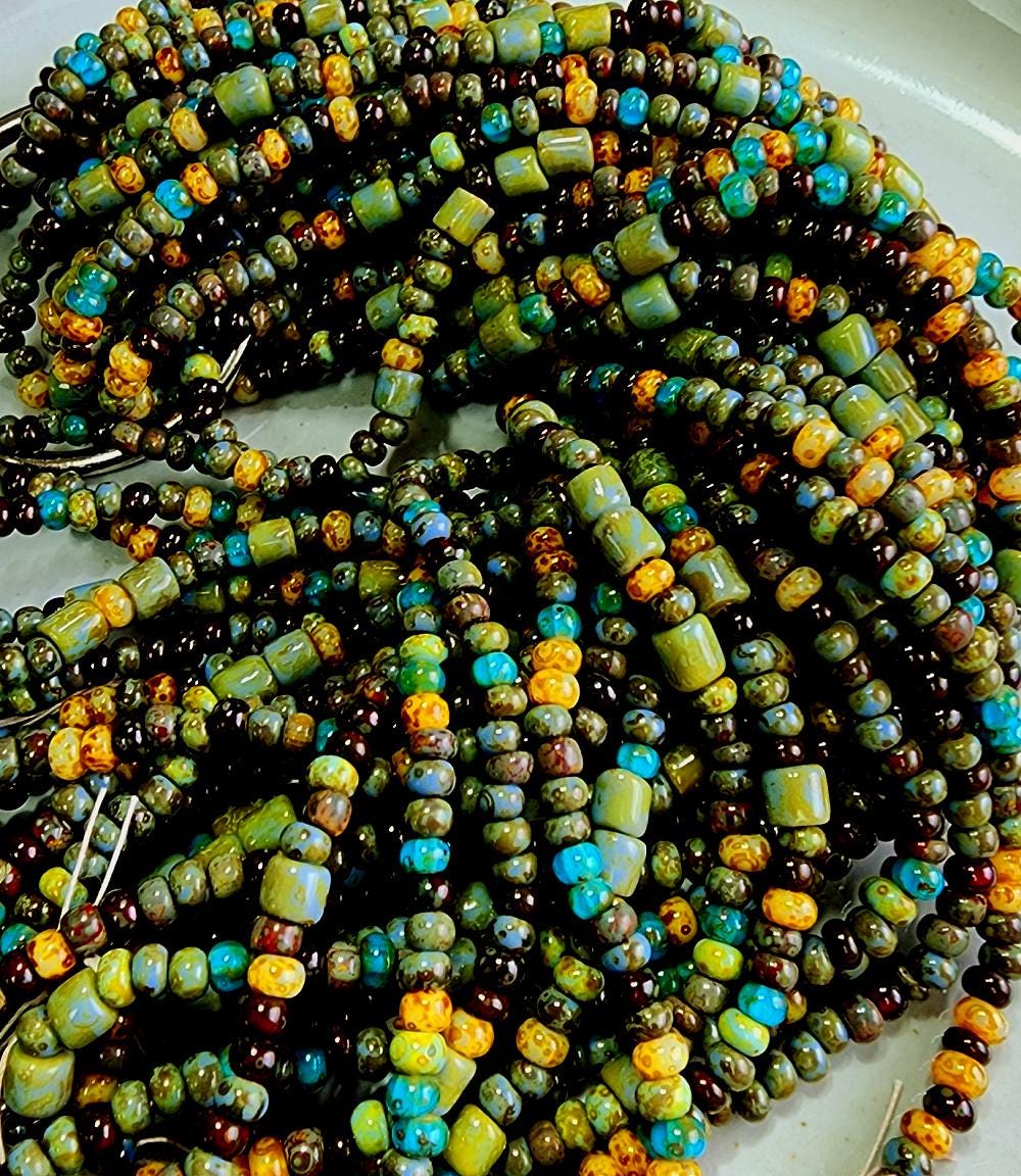 Caribbean Picasso Bugle Mix, Seed Beads, Size 6, Rocaille/Bugles, Czech Glass, 20 inch strands (9 bds/inch) Priced per strand