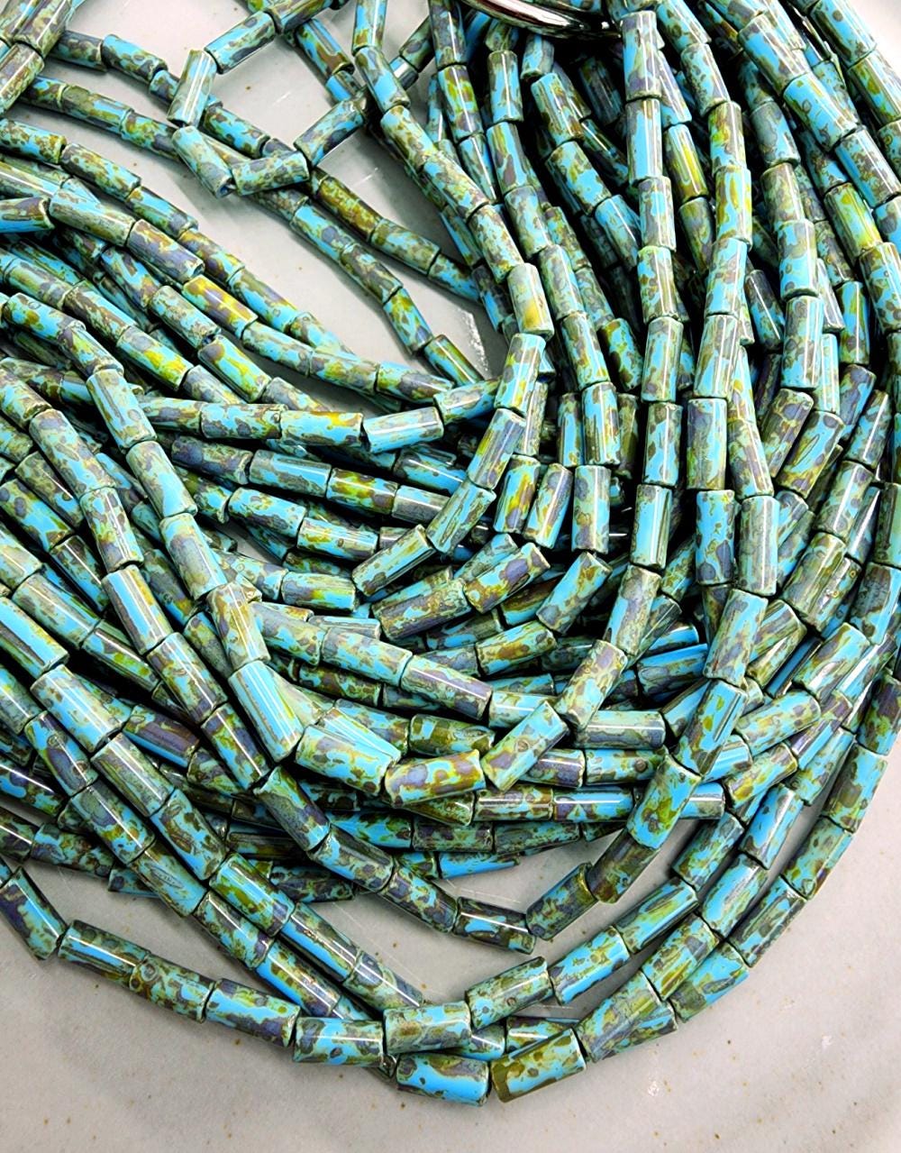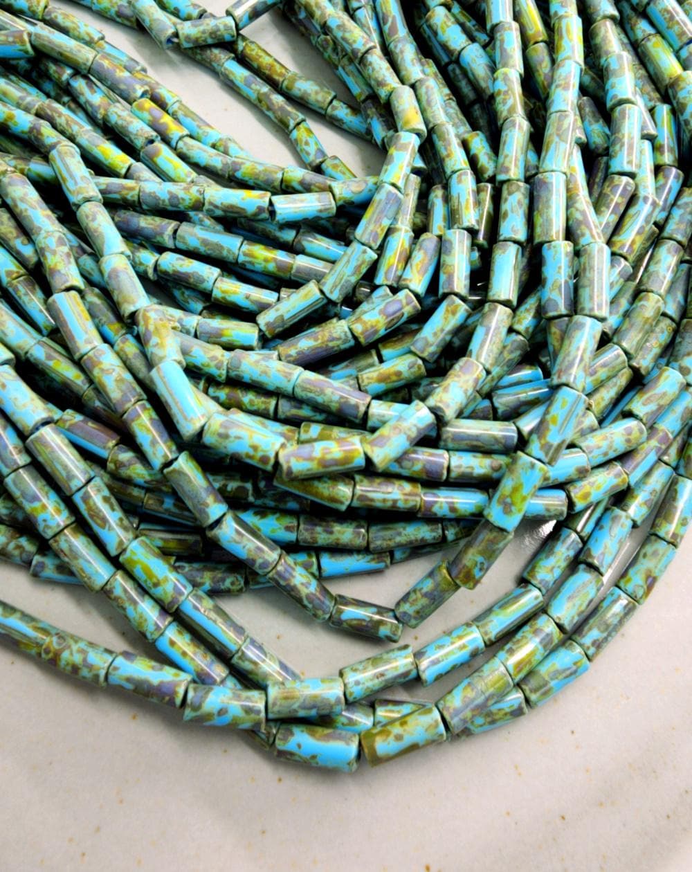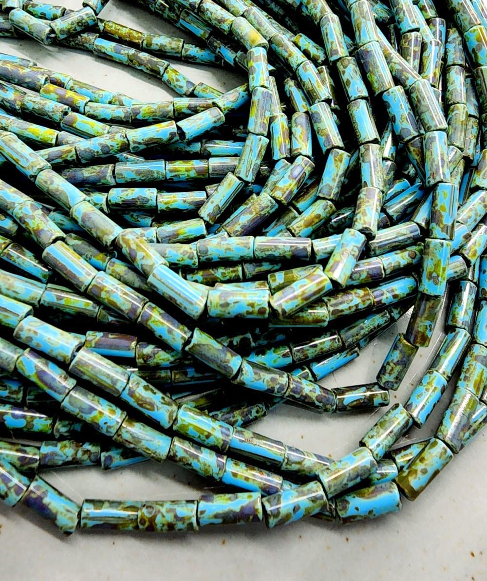Turquoise Blue, Travertine, Purple Picasso, Wampum, 9x4mm, Bugles, Czech Glass, 20 inch strands, Priced per strand