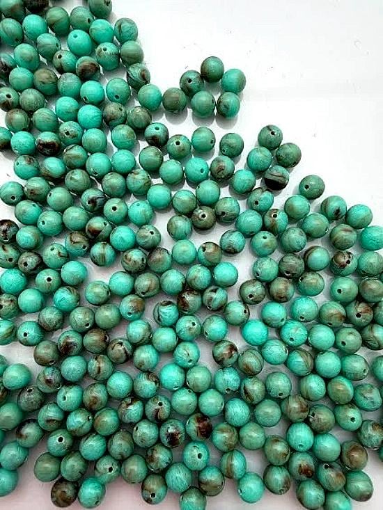 Turquoise Marbled, 6mm, Smooth Rounds, 30 pieces, German Made, Resin, Priced per Strand