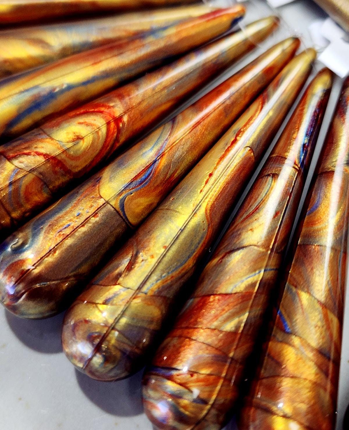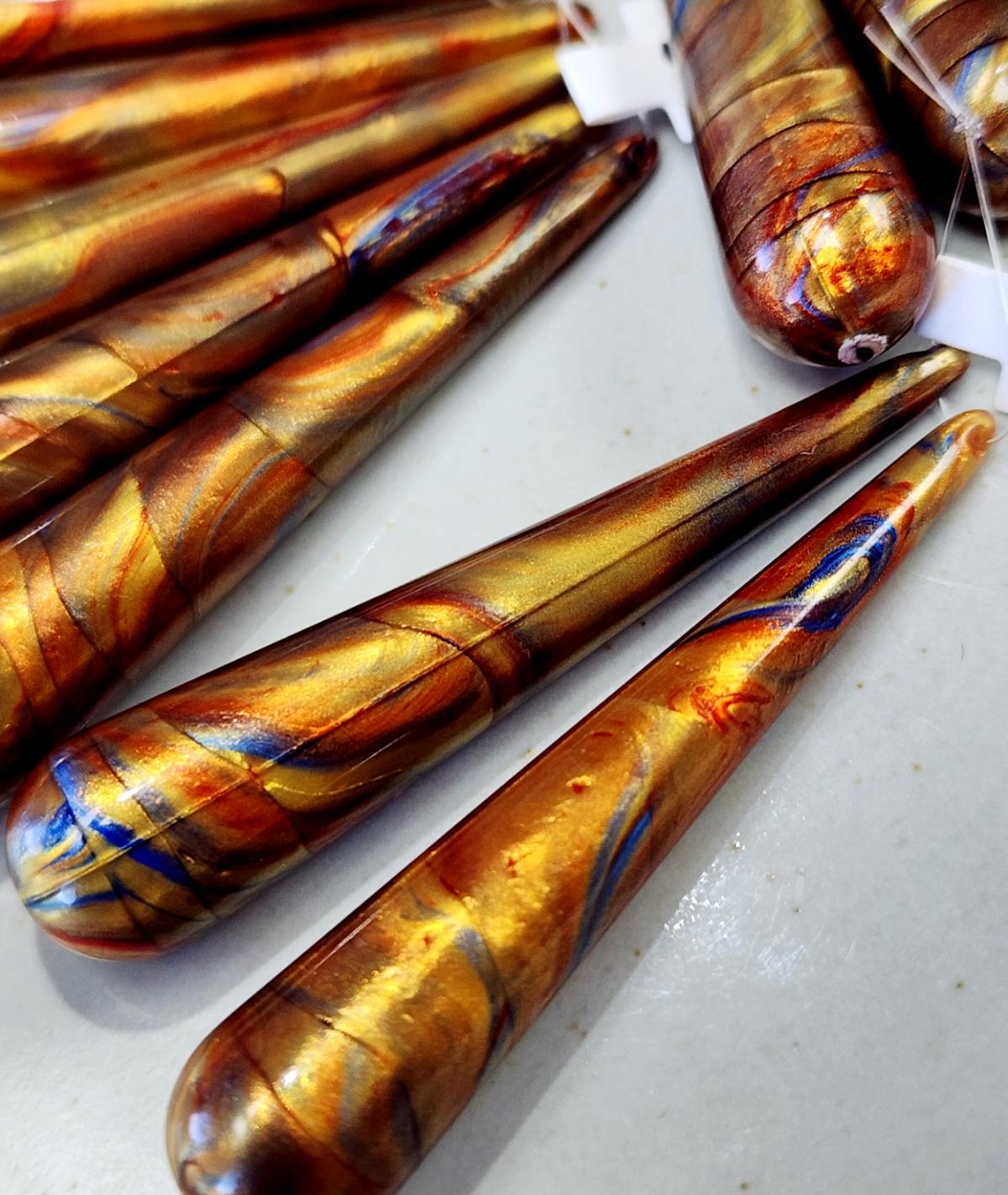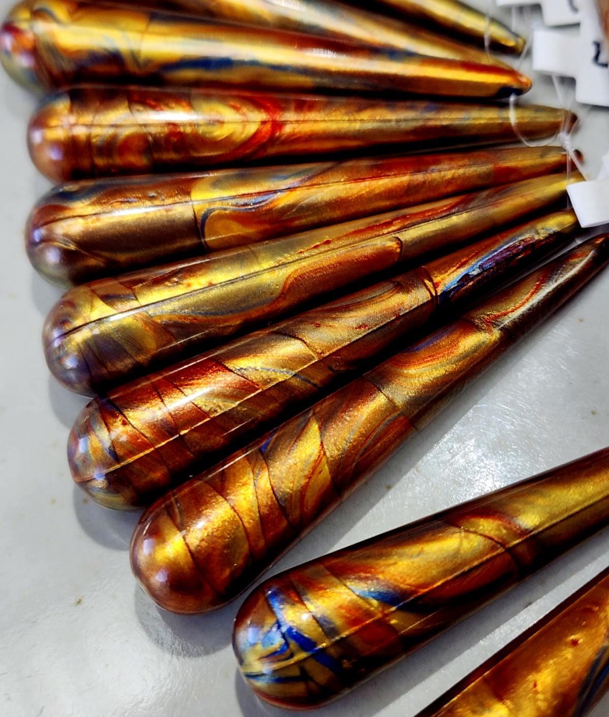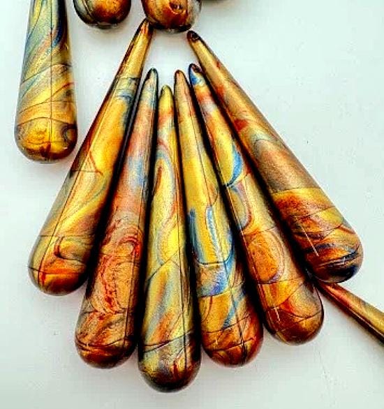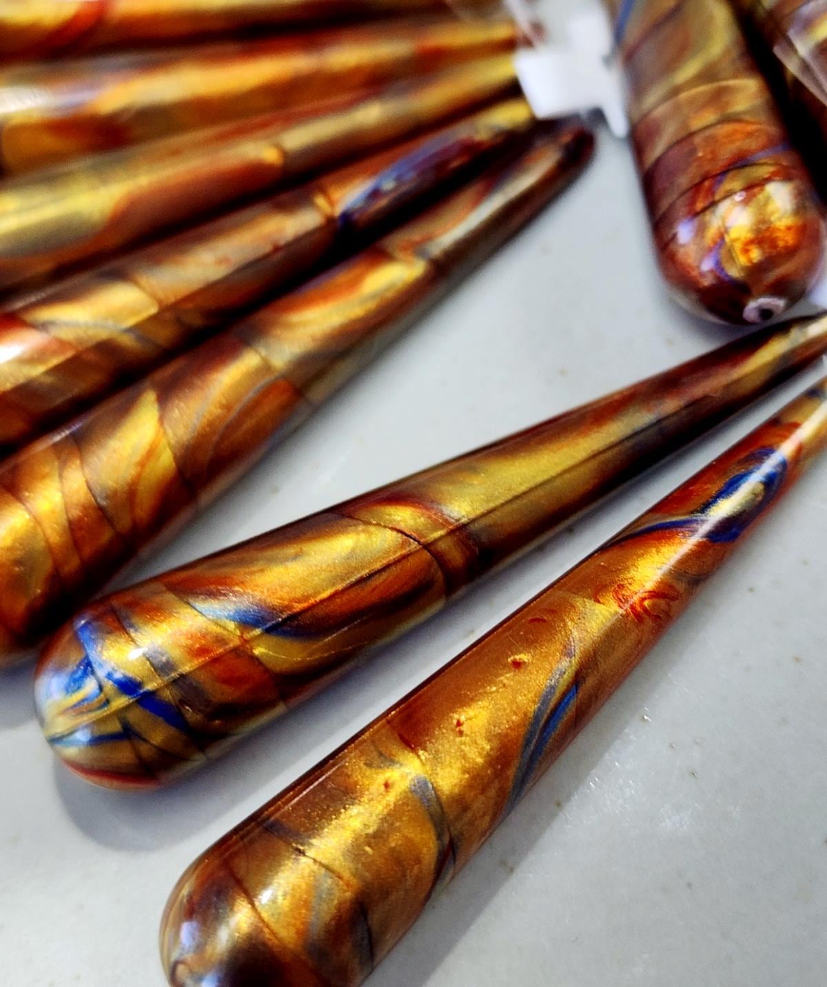 Lustrous Gold 61x12mm, Long, Teardrops, German Made, Resin, 2 per set, Priced per Set