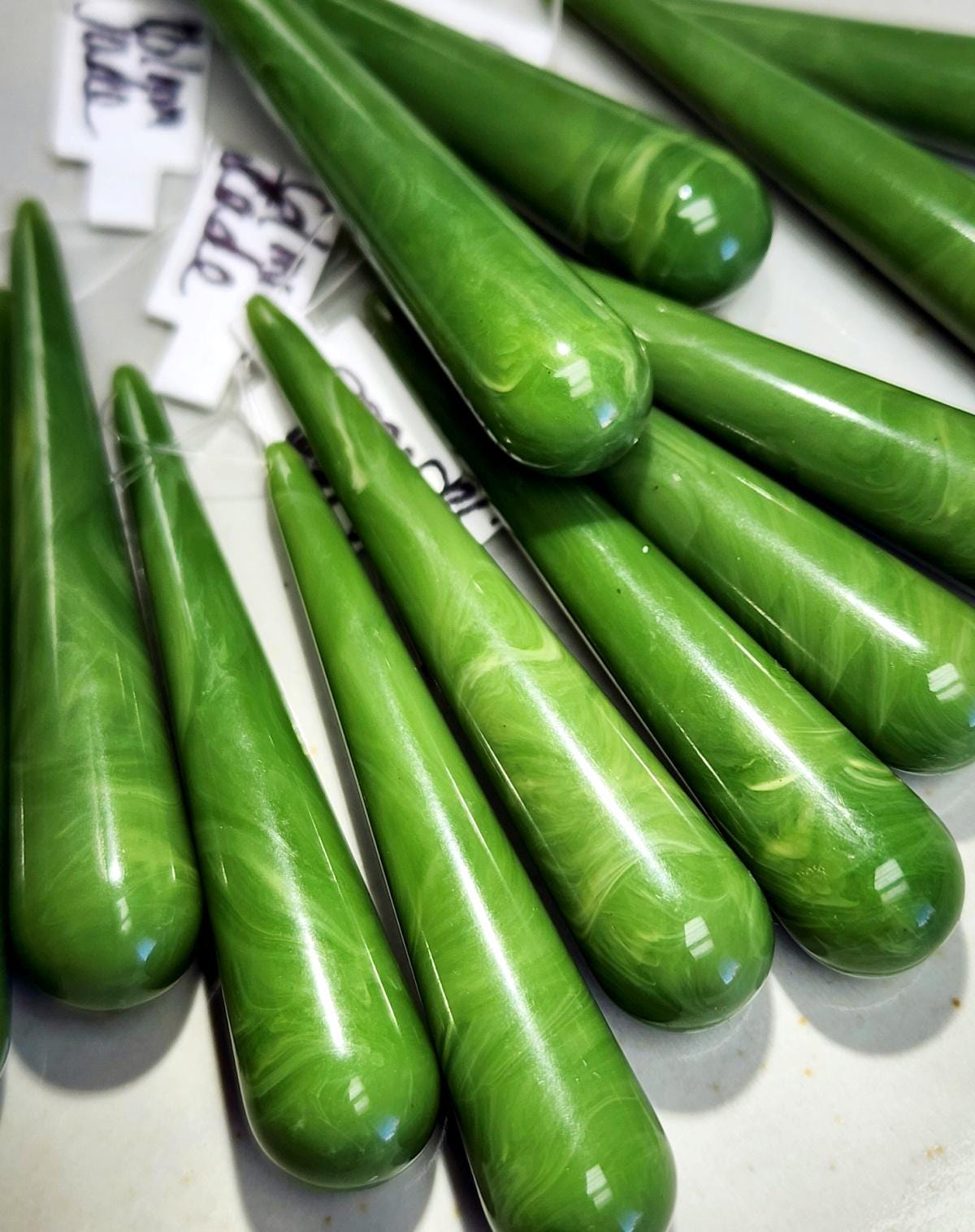 Marbled Jade 61x12mm, Long, Teardrops, German Made, Resin, 2 per set, Priced per Set