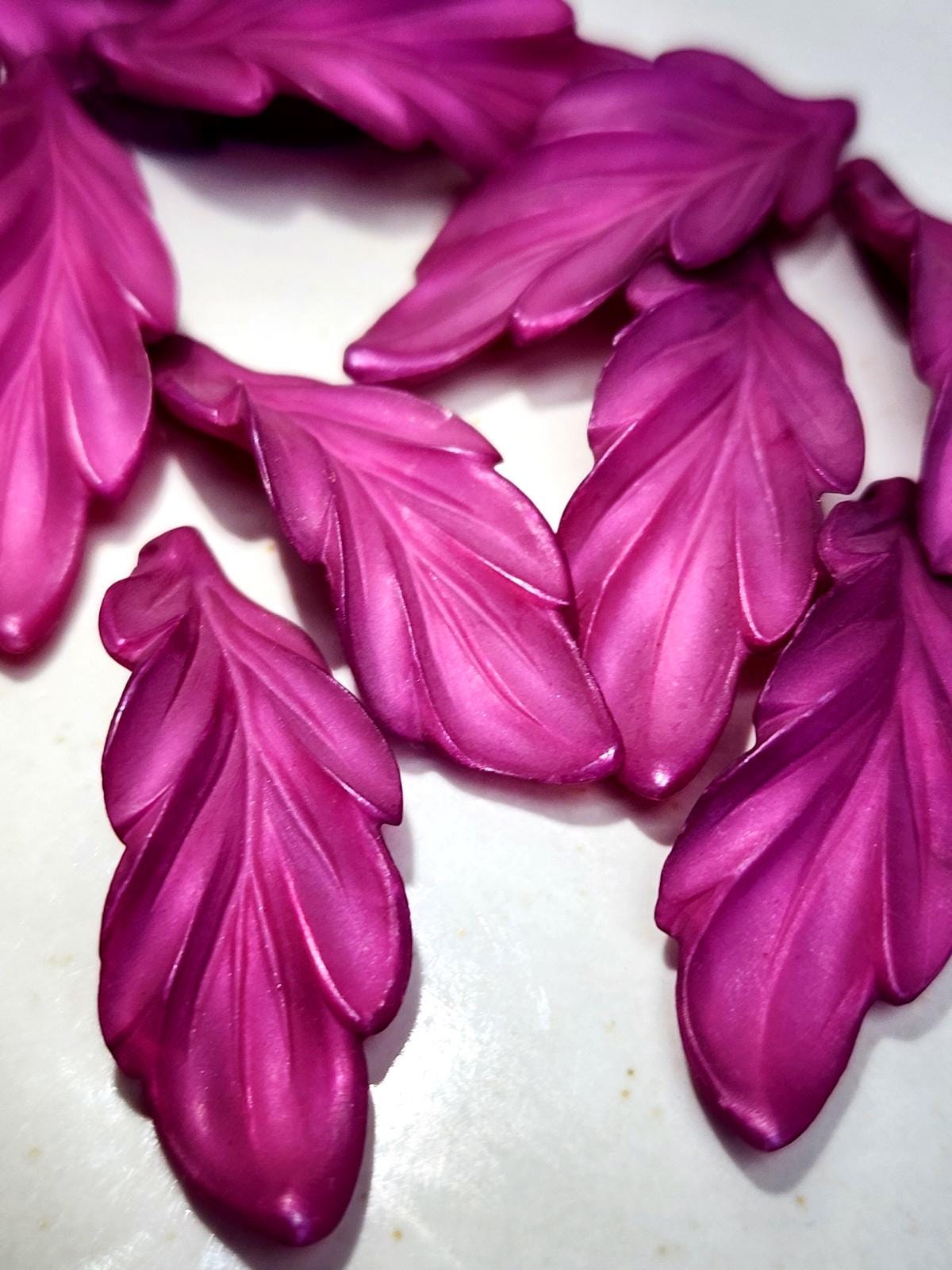 Deep Raspberry, MATTE, Leaves, Curly Leaf, Resin, 40x15mm, VINTAGE, German Made, Component, Priced per Piece