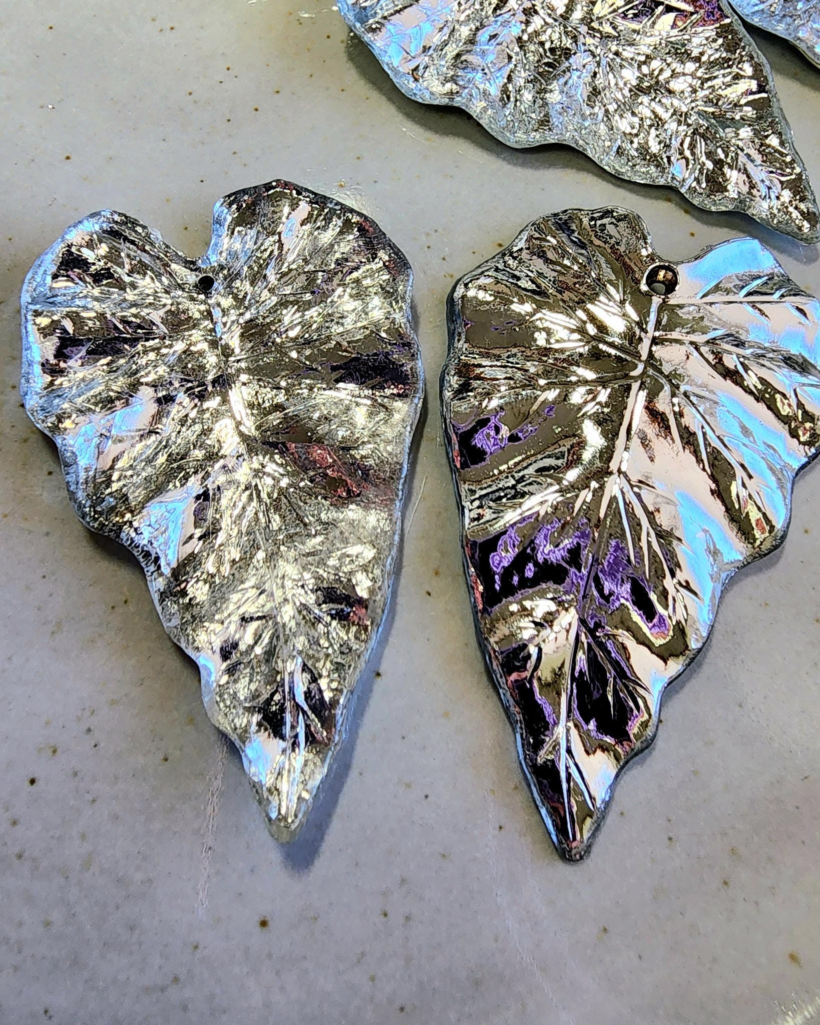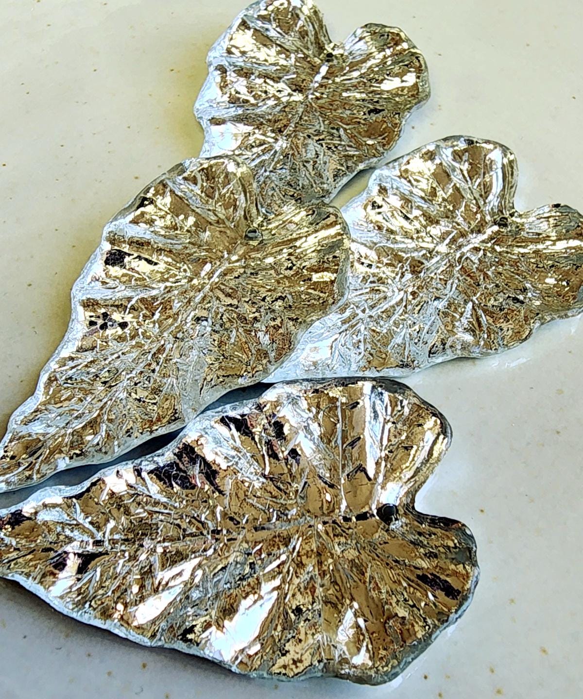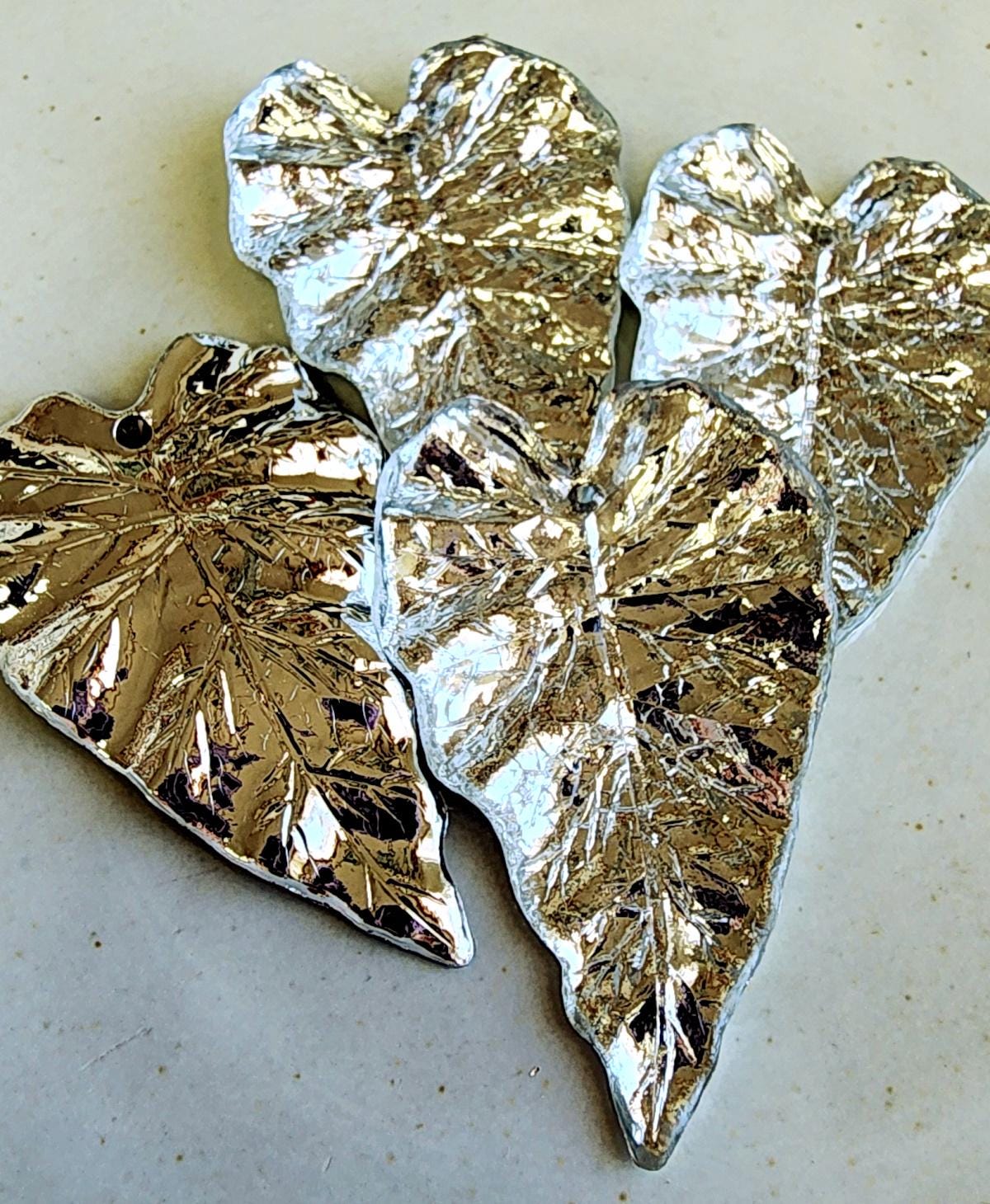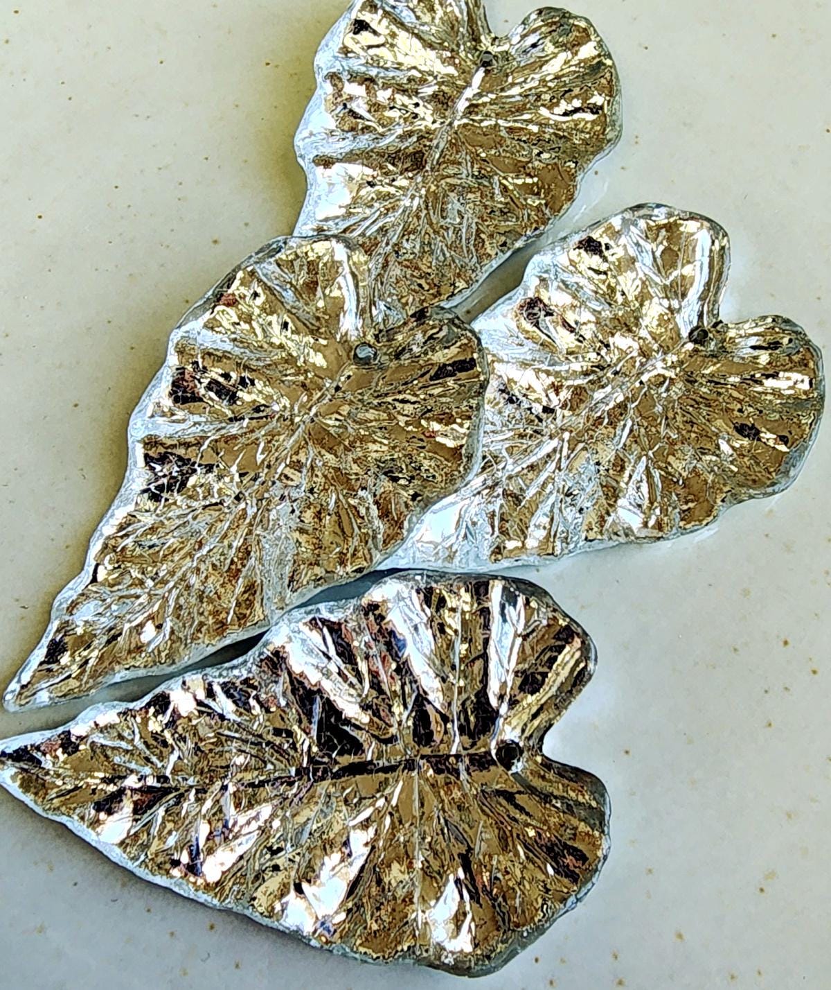 Silver Foil, Long, Leaves, Resin, 50x31mm, VINTAGE, German Made, Component, Priced per Piece