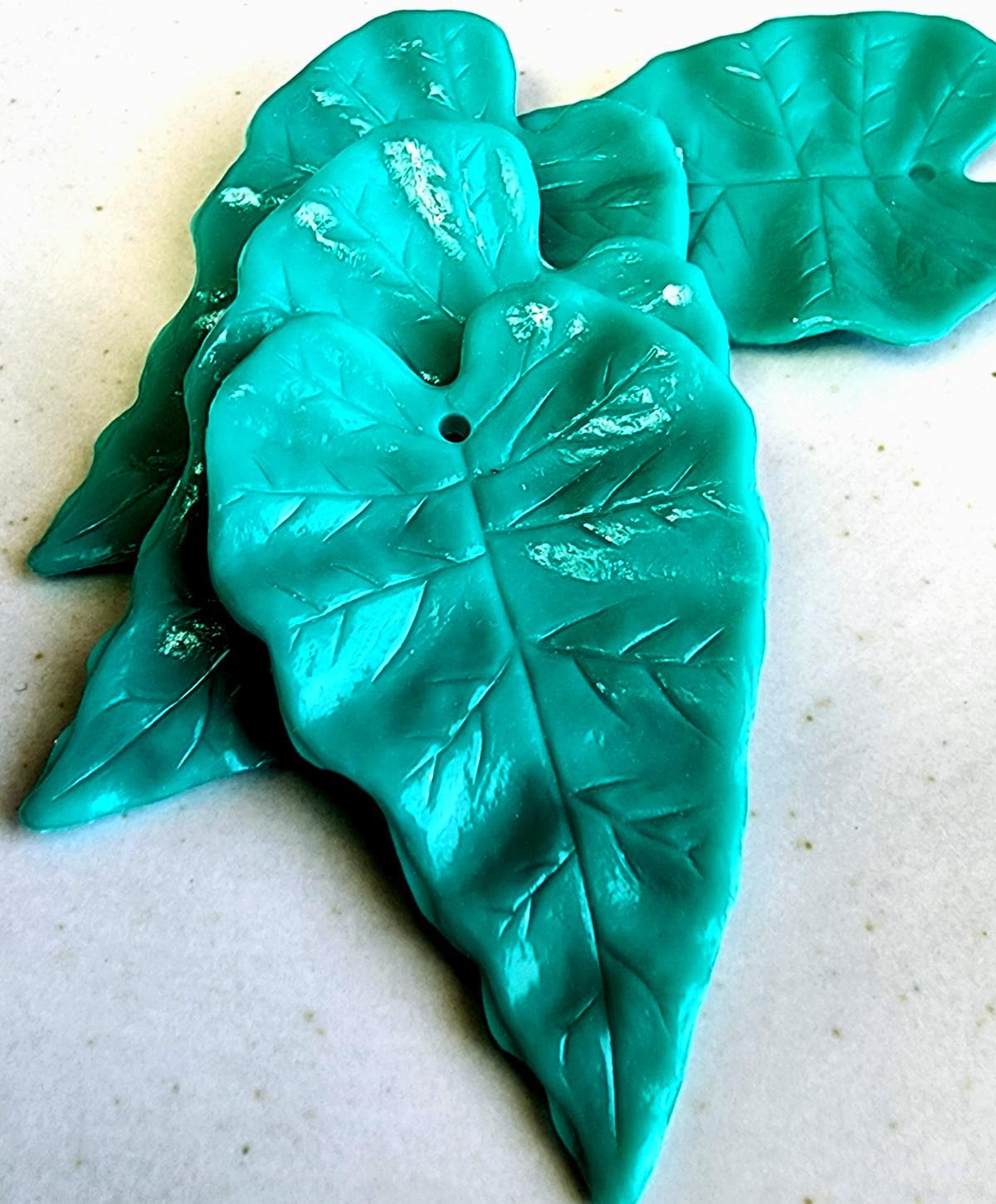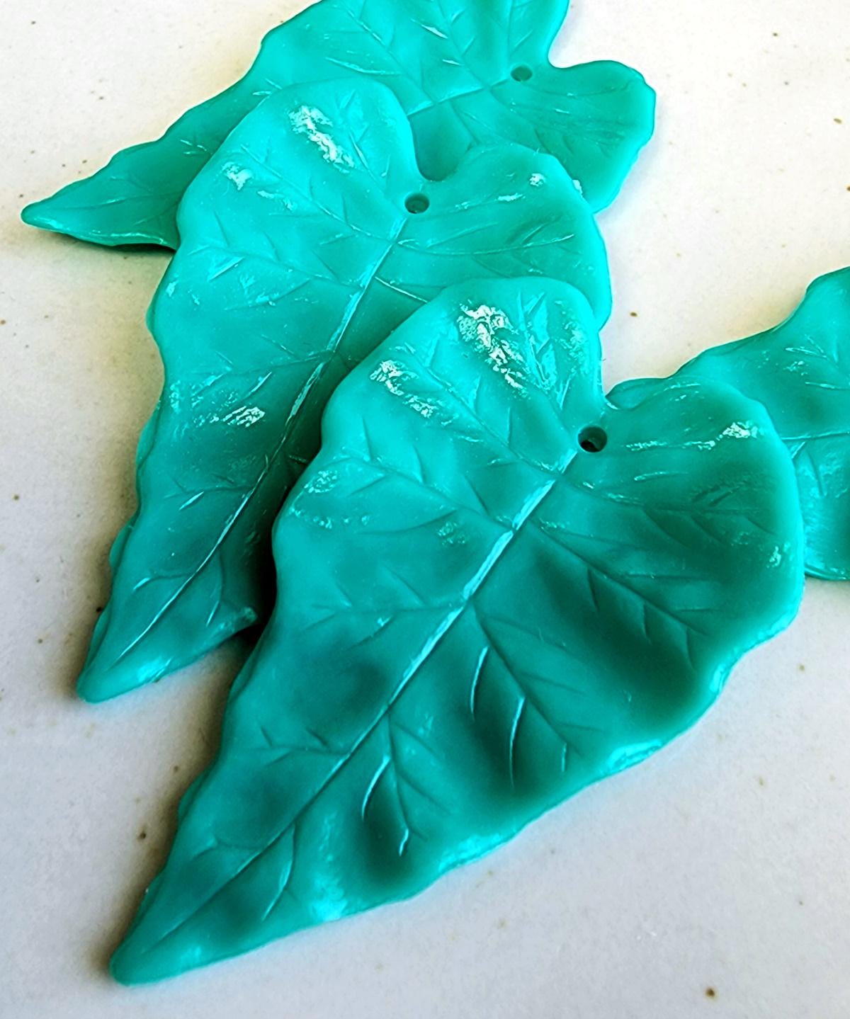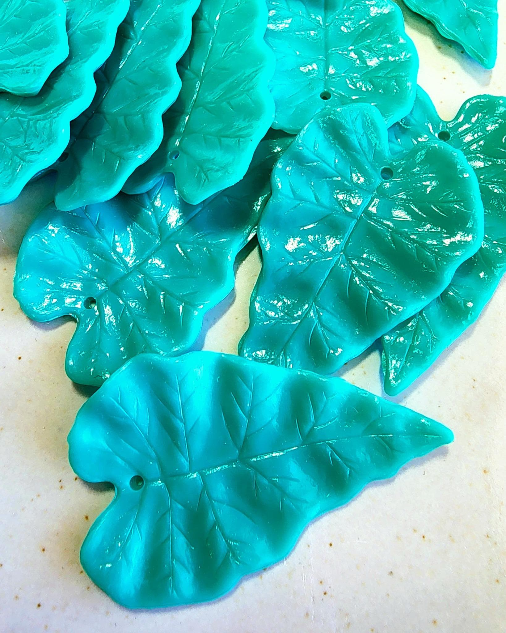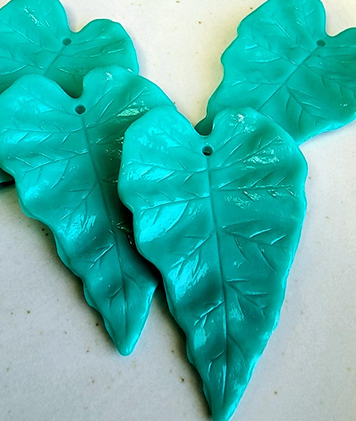 Opaque Dark Teal, Long, Leaves, Resin, 50x31mm, VINTAGE, German Made, Component, Priced per Piece (These are a bright dark teal in hand - it is hard to photograph)