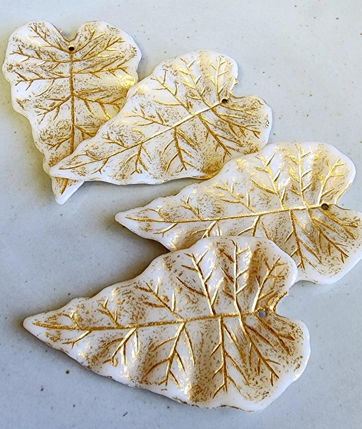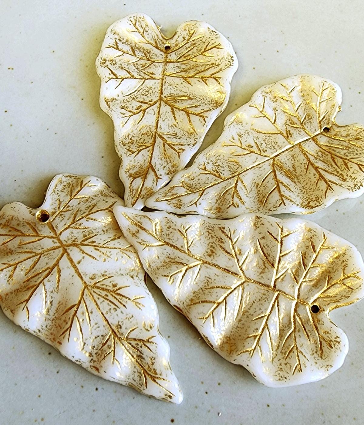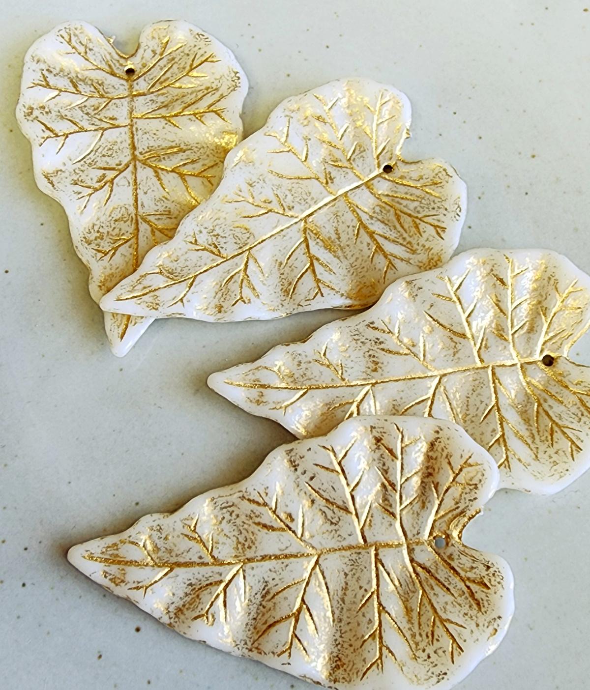 Ivory, Gold Wash, Long, Leaves, Resin, 50x31mm, VINTAGE, German Made, Component, Priced per Piece