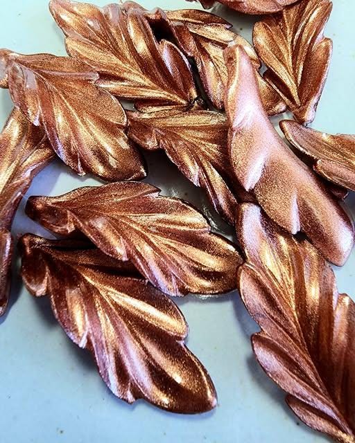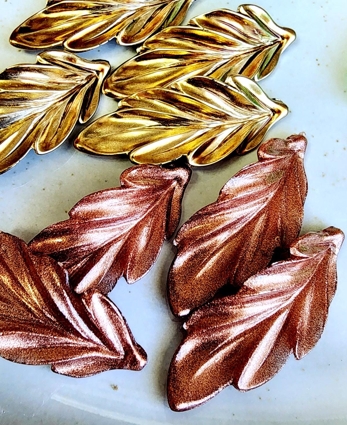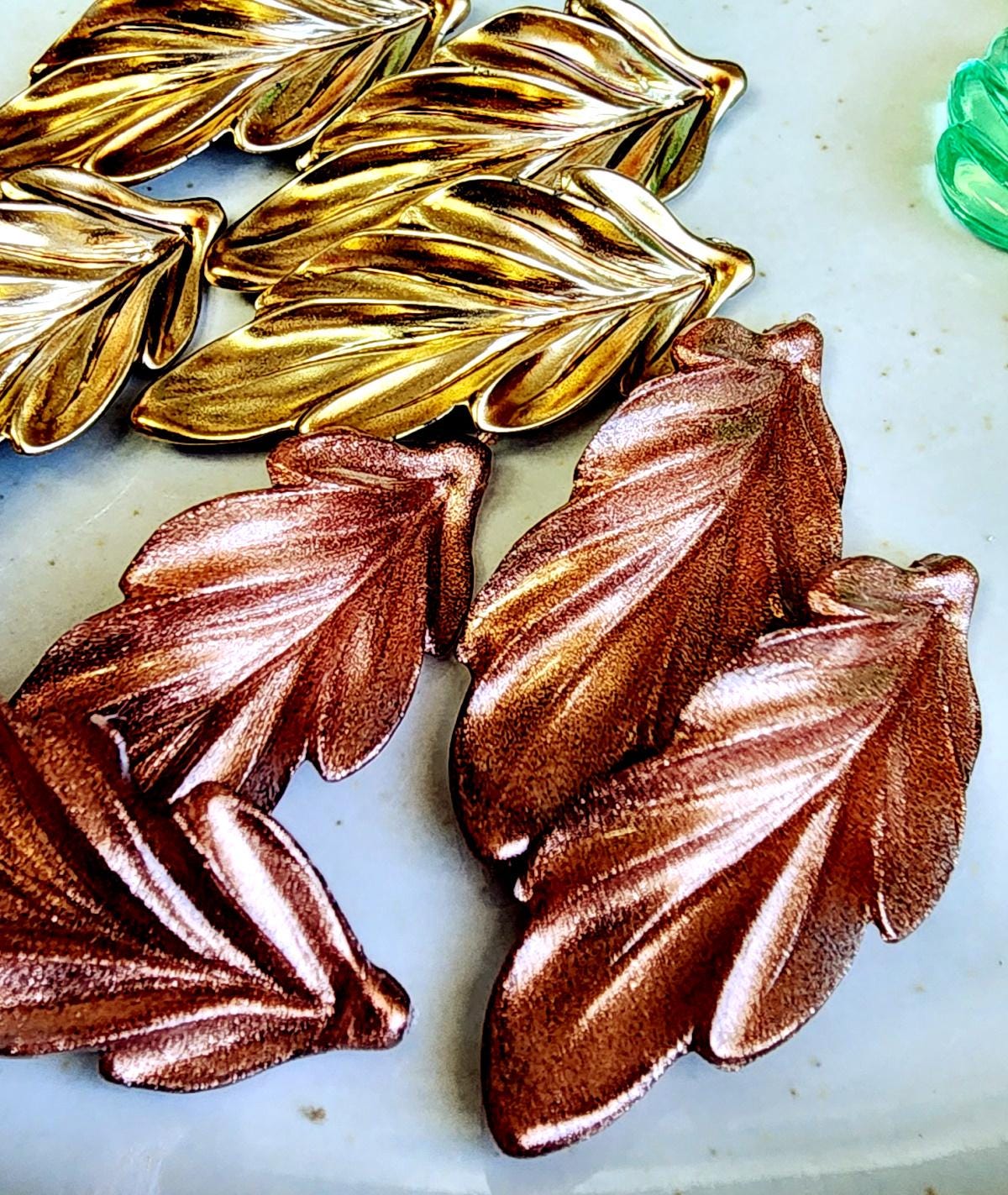Satin Copper Leaves, Curly Leaf, Resin, 40x15mm, VINTAGE, German Made, Component, Priced per Piece