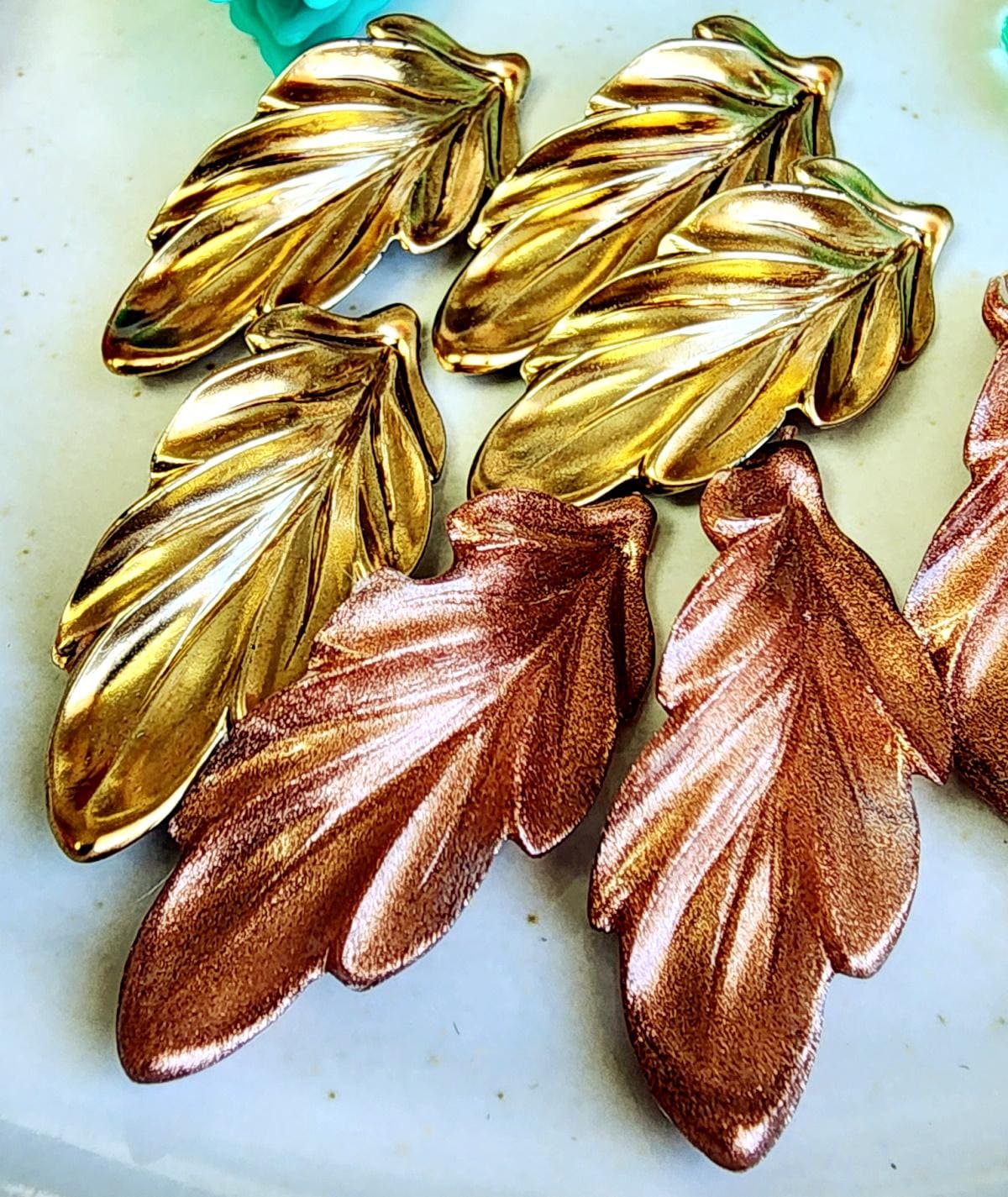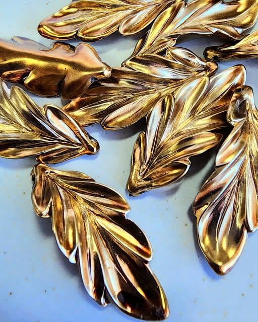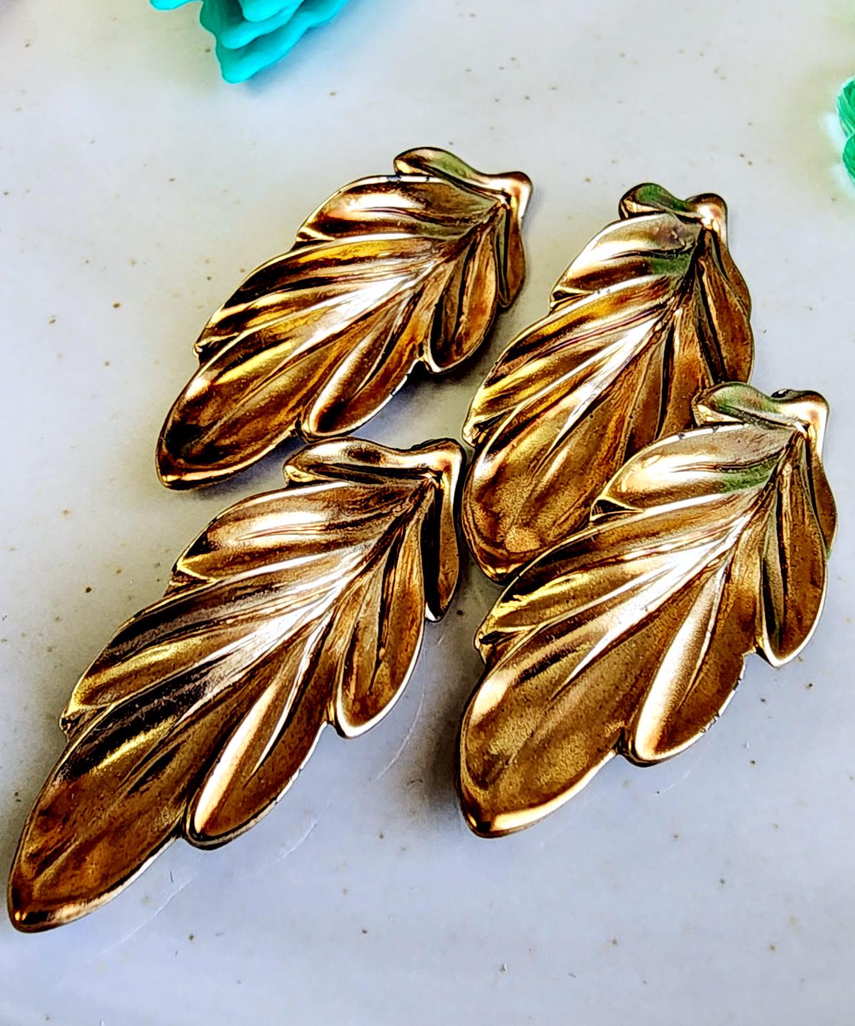 Metallic Burnished Gold Leaves, Curly Leaf, Resin, 40x15mm, VINTAGE, German Made, Component, Priced per Piece