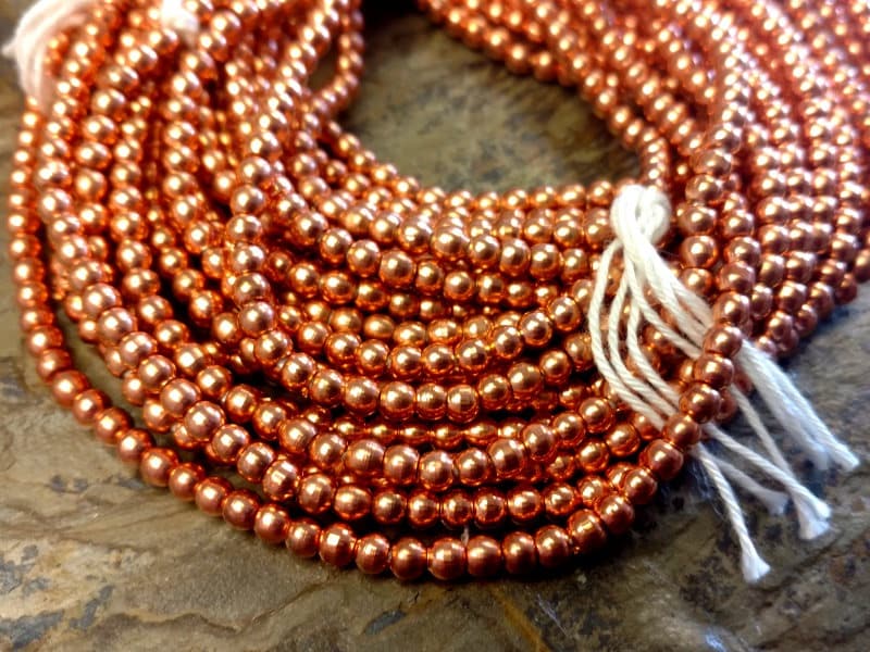 3x3.5mm Round Brass Bead African Brass Trade Beads Shiny Copper, Plated 1mm hole, 25 Inch Priced per Strand